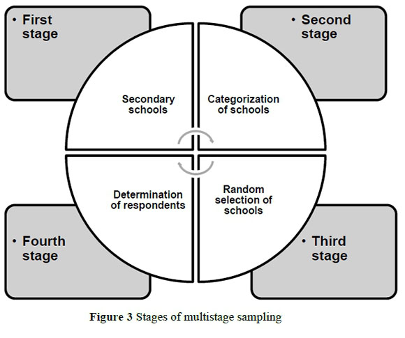 Multistage sampling is a type of cluster sampling in which the whole population is divided into small clusters for research purpose (Wolter, 2007). In the first stage of multistage sampling, 10 regions were selected for the research purpose. In the second stage, secondary schools were sampled randomly and in the third stage secondary school teachers were sampled to facilitate research.