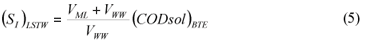 LS alternative: wastewater SI was determined as the effluent CODsol of a laboratory-scale 24 h fill-and-draw reactor, as in the other Mamais et al. (1993) alternative. Equations (3) and (4):