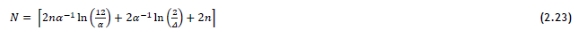 For the CCP model, the solution adheres to the constraints 90 percent of the time (α = 0.1) at a reliability level of 95 percent (∆ = 0.05). Thus Equation (2.23) calculates the number of iterations (N) required to ensure, with a probability of at least 1 - ∆, that the optimal solution is feasible. The number of unknowns in the equations being considered is denoted by n.
