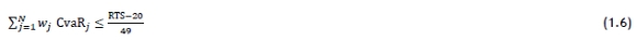 Financial risk tolerance is the maximum amount of uncertainty that a person is willing to accept when making a financial decision [23]. The 13-item financial risk tolerance scale developed by Grable and Lytton [24] is widely used and is regarded as reliable and valid [25-27]. This assessment calculates a risk tolerance score (RTS) between 20 and 69, with a higher score indicating a higher propensity towards taking risk. These RTS values fall into five risk categories: conservative (20-38), moderately conservative (39-42), moderate (43-48), moderately aggressive (49-52), and aggressive (53-69). Equation (1.6) ensures that a portfolio's risk (CvaR) does not exceed the investor's RTS score: