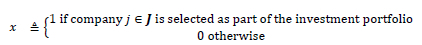 Equation (2.7) enforces diversity by ensuring that each portfolio consists of at least 30 companies. Diversifying a portfolio is standard practice to mitigate the risks associated with individual investments [4, 39]. According to Statman [40], an investment portfolio should contain at least 30 shares to be considered a diversified portfolio. Equation (2.9) further ensures diversity by requiring that each company that is selected must carry at least 0.001 (or 0.1%) of the total portfolio weight. Furthermore, Equation (2.10) ensures that no more than five percent of the total capital investment can be invested in a single company. This is in keeping with the market norms observed for unit trusts in the South African market, and the recommendation by Hallerbach et al. [41], who impose the restriction that a maximum investment proportion of five percent may be invested into a single company. Equation (2.8) ensures that the portfolio is fully invested, while Equations (2.9) and (2.10), in combination, ensure that only companies that are selected have a portion of the portfolio invested in them, and that no selected company carries a weight of less than 0.0001 (or 0.1%).