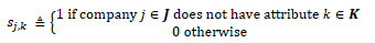 set of attributes that define a company's shares as sin share K= {1,..., 14}