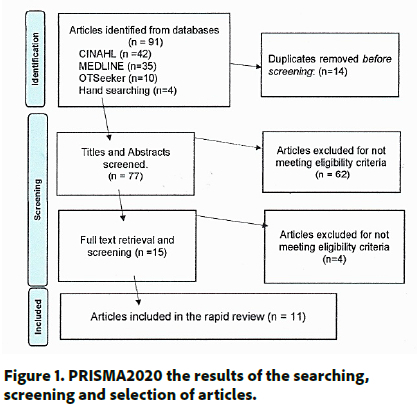The PRISMA 2020 diagram23, Figure 1 (below), shows the results of the search, screen and selection of burn related evidence for occupational therapy.