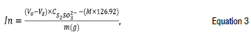 The concentration of iodine in the solution (mg/g) is expressed by Equation 3:
