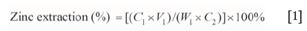 where W1(g) is the mass of zinc ferrites; V1(L) is the volume of the leach solution; C1(g/L) is the zinc concentration in the leach solution; and C2 (%) is the zinc content in the zinc ferrites.