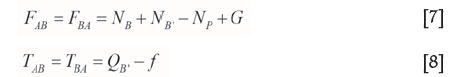 Equilibrium equations are obtained by mechanical analysis of block B (shown in Figure 7).