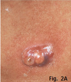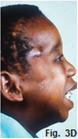 Fig 1A and B demonstrates an example of an infection of the canine fossa. The infection is commonly caused by the spread of infection from the maxillary canine and premolars. Fig. 1B shows a slight widening of the periodontal ligament space (Red arrow) suggestive of an apical infection. The canine fossa contains considerable connective tissue and fat, which allow accumulation of tissue fluids and pus between. These infections are most often controlled with antibiotics. However if the infection becomes localised, drainage is indicated. In the second case the patient presented for treatment of a lesion of her right mandible (Fig. 2A) which have been present for many months. The cropped radiograph (Fig.2B) demonstrates two root rests of a molar tooth with a draining sinus perforating the cortex (green arrows). After removing the root rests the lesion disappeared spontaneously within three weeks. A diagnosis of a cutaneous odontogenic fistula was made. The third case, a 12-year old boy, presented with a six year history of a septic draining sinus in the right temporal region (Fig. 3A).The patient had had his first infection of the right infra orbital region when he was one day old. Since that time he had five surgical procedures, which included craniotomies of the temporal region as well as a condylectomy for treatment of an ankyloses of the right TMJ. On examination, a 2x2 cm opening was found in the right temporal region; (Fig.3B). The patient could not open his mouth. The cropped pantomograph (Fig. 3C) showed an apical cystic lesion in the 46 region (yellow arrow), previous attempted condylectomy scar (black arrow) and the presence of a temporal sinus tract (blue arrow). The first surgical procedure involved removal of all infected focal areas of dental origin. This resulted in uneventful healing of the sinus tract (Fig.3D). A successful condylectomy was performed a few weeks later. Orofacial fistulas are not common but intraoral sinus tracts due to dental infections are common. If the tooth causing the problem is treated endodontically or by extraction the lesion will resolve.