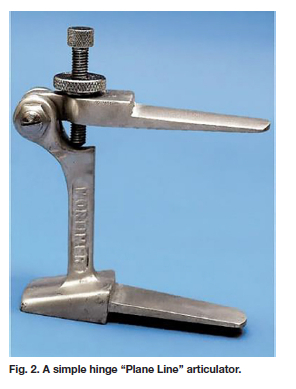 A 'modern' version of a simple hinge articulator looks a bit like Fig. 2, but in reality has been around for decades.