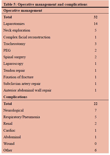 This study was undertaken at the Pietermaritzburg Metropolitan Trauma Service (PMTS), Pietermaritzburg, KwaZulu-Natal, South Africa. KwaZulu-Natal is located on the east coast of the country and has a population of over 11 million. Fifty per cent of the population live in the rural areas. The PMTS provides definitive trauma care to the city of Pietermaritzburg, the capital of Kwa-Zulu Natal (KZN) province. It is one of the largest trauma center in the province and also serves as the referral center for 19 rural hospitals within the province, with a total catchment population of over three million. Surgical staff maintain a digitized regional trauma registry for assessment and re-evaluation of outcomes. This system is known as the Hybrid Electronic Medical Registry (HEMR). Ethics approval to maintain this database has been granted by the Biomedical Research Ethics Committee (BREC) of the University of Kwa-Zulu Natal (BE221/13 and BE 207/09).