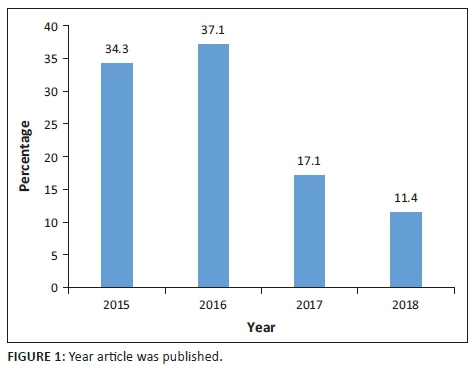 Figure 1 shows that the year with the highest academic output in relation to the categories associated with the first article of the Christian faith is 2016. It is notable that 2018 was the year with the lowest production. The above fact can be explained based on the date on which articles were searched for in the databases, which was during 2018, and, by the inclusion criteria, some texts were left out of the sample. In addition, it can be observed that until the peak production year, there was an upward trend that eventually fell.