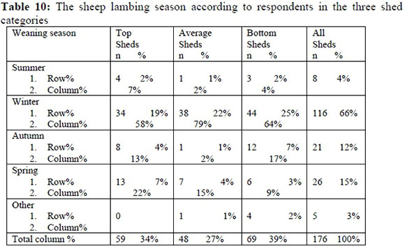 The sheep mating and lambing seasons are indicated in Table 9 and 10 below. According to 43% of the respondents the mating season is in summer while 26% indicated it to be in winter.