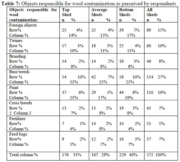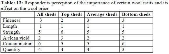 According to the above table all respondents indicated that the length of the wool is the most important trait that influences the price of wool followed by a clean yield. Surprisingly is that contamination (dirty wool) was indicated as not so important which is in contradiction with their perception of a clean yield.