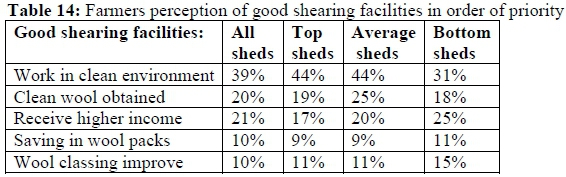 Respondent's perception of good shearing facilities in a priority order is presented in the next table.