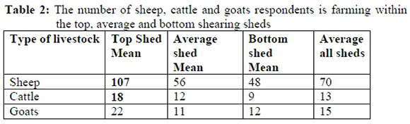 Respondents were requested to indicate the number of sheep, cattle and goats that they are farming with. The data are presented in the table below.