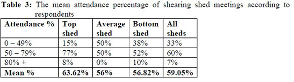 - Attendance of meetings indicated by respondents is presented in Table 3.