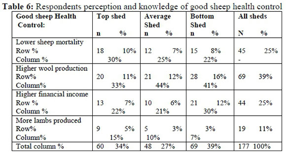 Animal health need serious attention at all sheds (top, average and bottom) specifically the prevention and treatment of all diseases. Specific attention need to be given to lamb mortality.