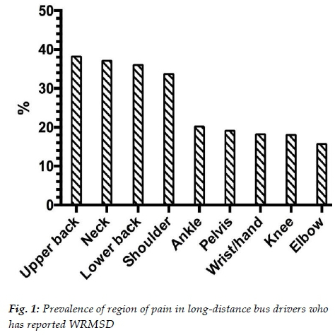CONCLUSION: The greatest proportion of pain was experienced along the axial skeleton in long-distance bus drivers. Upper back pain was the most prevalent of the WRMSDs reported in these drivers.