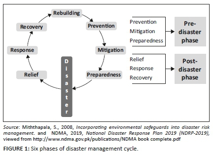 The World Health Organization (WHO) defines a 'disaster' as a phenomenon that causes severe disruption of society's functioning and causes human, material, economic and environmental damage on a large scale (WHO 2014). Scholars have categorised disasters into two main types: natural disasters and human-made disasters. The global frequency of natural disasters ‒ such as floods, droughts, landslides, avalanches, cyclones, smog and epidemics-pandemics-endemics have increased over the past few decades as a result of climate change because of rapid industrialisation processes (Padli, Habibullah & Baharom 2018; Thomas & López 2015). The institutions engaged in disaster-related research have identified the emergence of new and unprecedented health disasters and re-emergence of some old disastrous infectious diseases because of underlying conditions such as poverty, climate change, rapid urbanisation, declining ecosystems, etc. (Cuthbertson et al. 2019; ed. Veenema 2019). Prior research suggests that these public health emergencies pose a severe threat to humanity and can result in complex disasters if not dealt with appropriately (Alwidyan, Trainor & Bissell 2020).