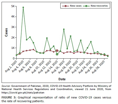 Therefore, cooperation between civilian and military authorities to manage the health disaster was necessary. The role of the Pakistani military is well-specified in the constitution of Pakistan and under the 'National Response Plan of 2010'. However, it is important to notice that the military has only been engaged in 'relief operations'. Therefore, in response to the COVID-19 situation, it is the first time that a common headquarter (i.e. NCOC) for the coordination between the civil and military organisations regarding policy decision-making has also been established in the case of a health emergency. This type of collaboration between the two departments is unique in nature and has never been observed before. See Figure 3 for the new cases versus newly recovered in Pakistan.