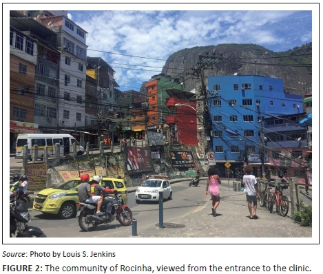 South Africa and Brazil share many sociodemographic and health features that provide many learning opportunities. Following the 21st World Conference of Family Doctors held in November 2016 in Rio de Janeiro, the authors, fellow family physicians on either side of the Atlantic Ocean, reconnected. Dr Goldraich is the descendent of German-Polish immigrants during the Second World War. He lives with his wife, also a family doctor and mother of their 1½-year-old daughter, in the city of Rio de Janeiro. He has worked as a clinician and family physician supervisor for the last six years in Rocinha, the largest favela in Rio city, and invited his South African counterpart (first author) to visit the clinic where he works. With a reminder that not all clinics in Brazil look alike, the work happening at this clinic that opened nearly seven years ago is remarkable and needs to be shared with a wider audience (Figure 1).