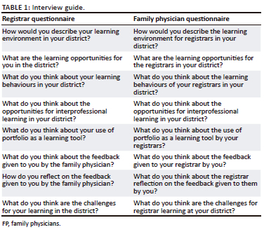 All second-and third-year registrars in the programme were invited to participate. First-year registrars were omitted as they did not have adequate training experience to contribute meaningfully. Registrars in their fourth year and beyond were excluded as they were completing their elective rotations and were not actively involved in the yearly training programme. Family physicians, who are jointly appointed by the university and the relevant provincial health departments, were invited to participate. Recently qualified FPs who had not registered as specialists and were not joint appointees were excluded. All participants who were invited from the FPs and registrars agreed to participate in the study. The final samples consisted of 11 FPs and 11 registrars.