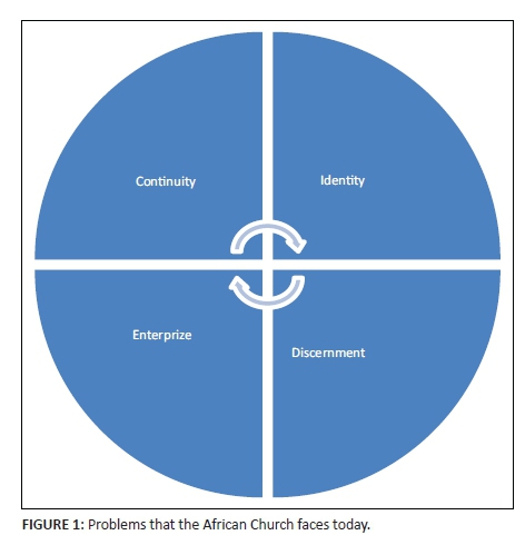 Africa is indeed a continent of immense potential; however, there are many challenges that Africans face in this new era of 'post-independency', challenges that need to be uniquely dealt with by African scholars and concerned ordinary Christians dedicated to the cause of Christ for our continent. Figure 1 illustrates four problems that the Church faces in Africa today. These challenges are to be seen primarily in the sphere of African ecclesiology (cf. Muzorewa 1985:98-99).
