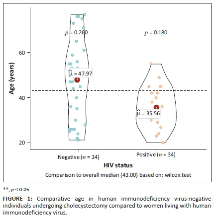 METHOD: A case series study was conducted of all black South African women undergoing cholecystectomy for gallstone disease over a 1-year period at King Edward VIII Hospital, Durban, South Africa. Age, body mass index (BMI), family history of gallstones, oestrogen exposure and lipograms were compared between WLHIV and uninfected women. Categorical variables were tested using either the Fisher's exact test or Pearson's chi-square test. Means were compared using independent t-tests. For non-normally distributed data, the Mann-Whitney U test was used. Statistical tests were two-sided, and p-values of less than 0.05 were considered statistically significant.