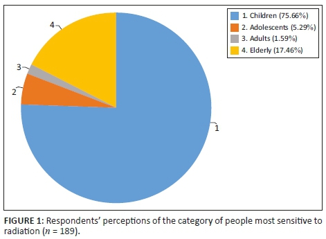 More than 75% of doctors considered children as the most sensitive to radiation, while less than 20% perceived that the elderly were the best suited for this category (Figure 1).