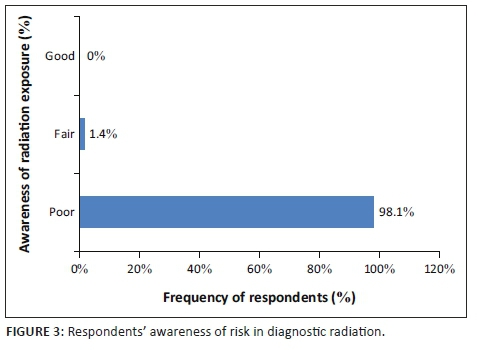 Education of medical professionals in radiation protection issues and radiation safety has been a continuous problem even in well-developed countries.10 This study therefore investigated doctors' awareness of diagnostic radiation exposure at Dr George Mukhari Academic Hospital (DGMAH), South Africa.