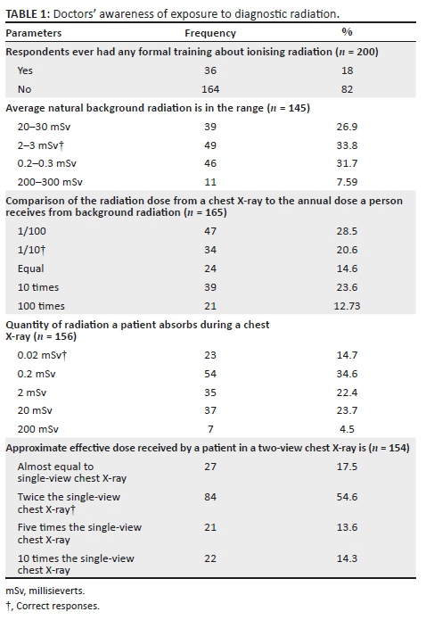 Medical doctors' awareness of radiation exposure in diagnostic radiology investigations in a South African academic institution
