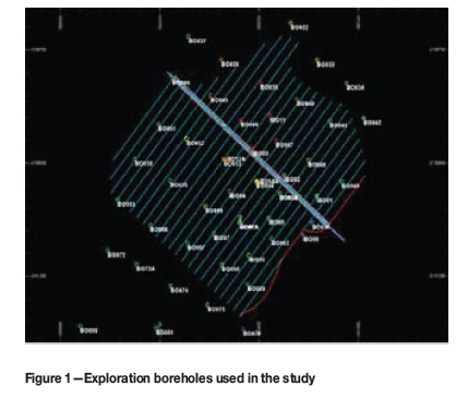 To get a true picture of the in situ rock, core is oriented. Core orientation involves the determination of the topmost or bottommost point of the top face of a drill run, which is then linked to the next run. The geotechnical holes were drilled using an automatic temperature control (ATC) orientation tool. In this way, an orientation line was drawn along the top of the core. This makes it easier to uniquely orient the core in space. This reference line is used to determine the trend and plunge of the joints. Several exploration boreholes were drilled on the site. These are shown in Figure 1. For this discussion, the authors chose borehole BO53A for illustrative purposes.