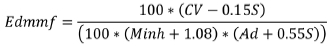 Edmmf = Specific energy, dry mineral matter-free and the mineral matter ratio is determined by