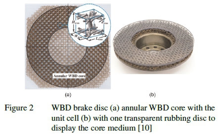 Ventilated brake discs are used in heavy vehicles due to their ability to dissipate heat more effectively [18]. However, the current brake disc topology is limited by the casting process [19] which inhibits the use of a multitude of thin pin fins in the ventilated channel as thin cross sections cannot be economically cast without defects. Thick cross sections adversely affect the convective heat transfer performance of the brake disc [11]. This led to the introduction of a cellular metal material into the ventilated core of a patented WBD brake disc by Mewetal. [10].