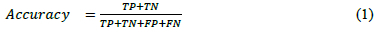 Accuracy gives the model's overall fraction of total samples correctly categorized by the classifier as in equation 1.