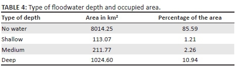 Flood depth maps revealed that around 1025 km2 area occupied deep flood depth categories and medium, shallow and non-flood area occupied 2.26%, 1.21%, 85%, respectively (see Table 4). Here, the depth maps developed only the basis of topographical conditions during the formation of the elevation model of the study area and field visit (see Table 3).
