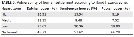 Different hydrological variables, such as flood frequency, depth of flooding, rate of water level rises, water velocity, topographical exposure and sediment load, influence flood hazards of a particular area. Two hydraulic components, that is, flood frequency and flood water depth, have been taken into consideration for the assessment and confirmation of the vulnerability of the district to flood hazards.