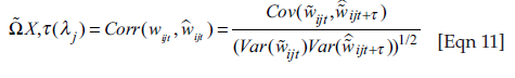 Equation 11 is a stable estimator of wavelet correlation from the MODWT, and Equation 10 is a nonlinear function of all numerators