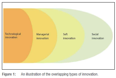 Figure 1 illustrates a comprehensive perspective of innovation that includes the types that are discussed in this report. It emphasises that the different types of innovation are not discreet but overlap and often complement one another in value creation.