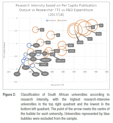 South African universities were classified as high, medium, or low research-intensive universities as presented in Figure 2.