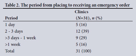 There were delays in delivery of pharmaceuticals. Although all clinics have an emergency ordering system, emergency orders took up to a week or more to be delivered (Table 2).