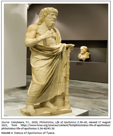 Ascetic sages' sector refers to itinerary sages who were also seers that embraced various mystical and esoteric Graeco-Roman traditions. Like the charismatic sector, the ascetic sector involved exorcism of malevolent spirits that could invade and harm human bodies (Meier 1994:576-578). Apollonius of Tyana, as presented in Figure 3 is one such example of the ascetic sector, as noted by Philastratus (circa 170-250 CE) a 2nd century CE biographer.