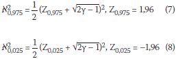 2) test, the 95% confidence limit is given by: