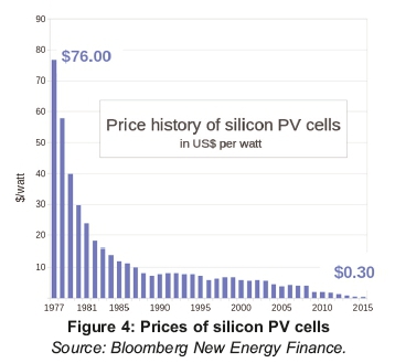 The industry indicated that the installations of SSEG in the municipalities is primarily based on the solar PV installations, these dominating the industry. This is due to the prices of the PV components, such as silicon PV cells, having significantly dropped over the years (see Figure 4) and the ease of implementation -as opposed to other technologies, such as wind, which are viewed as capital-intensive.