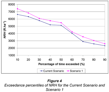 Even though Scenario 4 obtained the highest yields and used irrigation water most beneficially, the increased capital costs associated with a subsurface drip system negated these benefits and resulted in the system being marginally less profitable than Scenario 3. In this instance, the average NRH obtained using Scenario 4 was R7 561.9·ha-1, slightly lower than the R7 841.0·ha-1 obtained using Scenario 3.