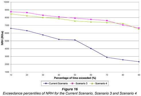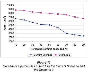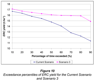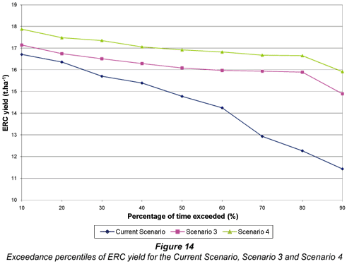 Comparisons between Scenario 3 and the current scenario of ERC yield, SIE and NRH are shown in Figs. 10, 11 and 12 respectively. Comparison of water use/dam storage is not necessary in this case as the amount of water used by this system is identical to that used in Scenario 2.