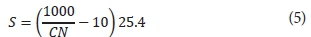 The value of S is deriveU from curve number (CN) as