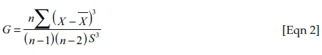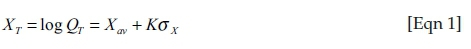 where QT is the discharge for estimated Tr, K is the probability factor based on n-years recurrence interval, Xav is the mean of the logarithms of annual peak flows (XT) and σx is the standard deviation regarding the mean of the logarithm of ADM. Skewness coefficient G (Eqn. 2) was computed as an important hydrological characteristic that gives a measure of sampling distribution shape.