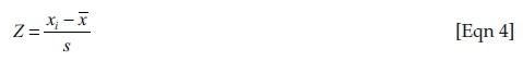 is the sample mean, Z is the normalised standardised departure, xi is the six-months mean value and s is the sample standard deviation.