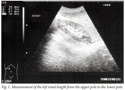 There were discrepancies in sizes between the right and the left kidney[1013] In our study, the left kidney was significantly larger than the right kidney (jkO.001). For this reason, the size of both kidneys should be measured separately.