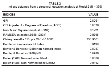 Taking into account the values of the indices as indicated in Table 1, the causal model as shown in Figure 2 indicates a promising fit with the data according to the criteria set out by Hair, Anderson, Tatham and Black (1998). The basal metabolic rate (RMR) and RMSEA values are close to zero and the other relevant fit indices approach 1.0.